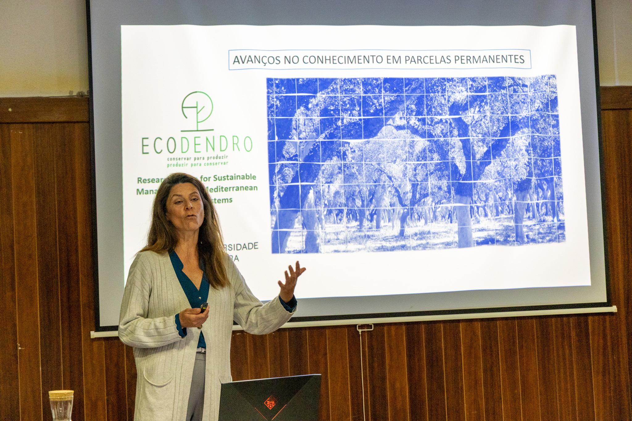 Durante a sessão da manhã, realizada no Colégio Luís António Verney, foram apresentados resultados relacionados com a monitorização de sistemas florestais mediterrânicos, com enfoque em espécies como o sobreiro, o pinheiro e a azinheira.