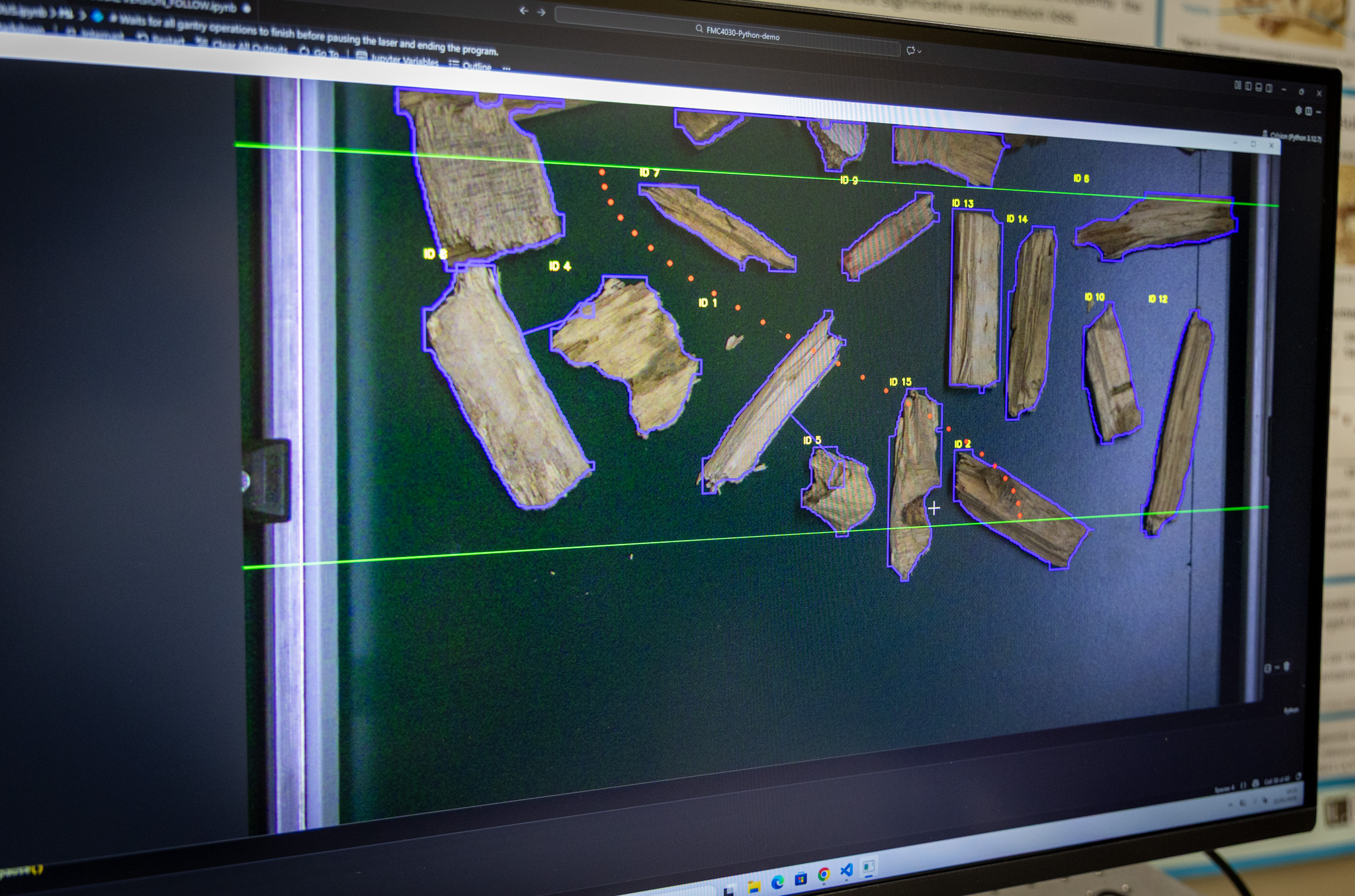 Desenvolvida pelo INESC TEC, esta tecnologia assenta num sistema automatizado que combina Machine Vision com espectroscopia de plasma induzido por laser (LIBS), permitindo identificar, de forma rápida e fiável, os elementos presentes na madeira reciclada.